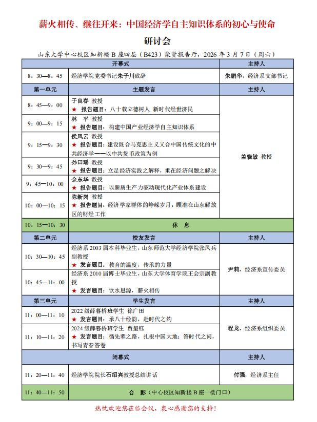 薪火相传、继往开来:中国经济学自主知识体系的初心与使命